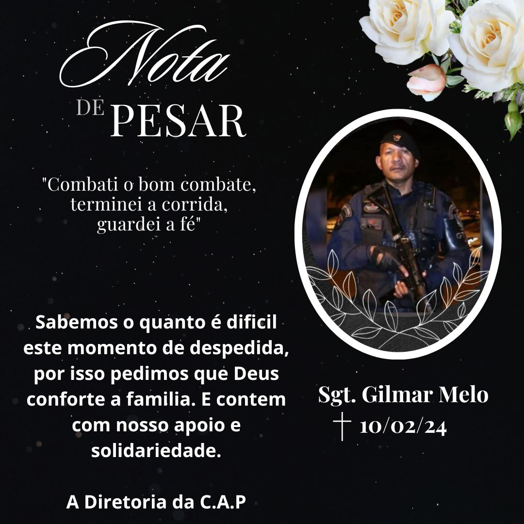 É com grande pesar que tomamos conhecimento do falecimento do Sargento Gilmar Melo, ocorrido neste sábado 10/02/2024.