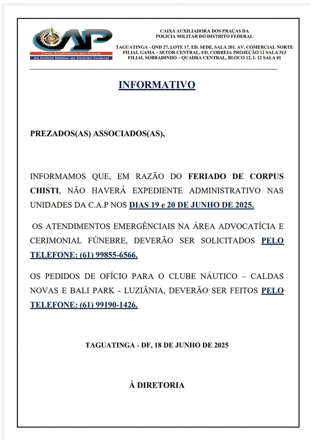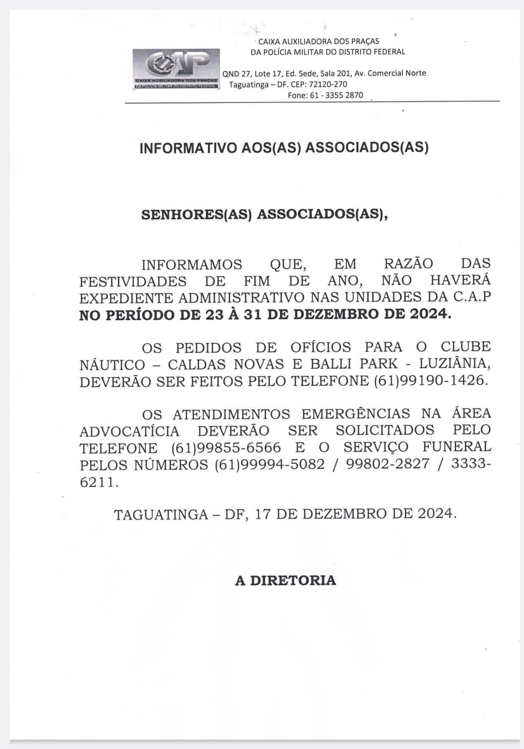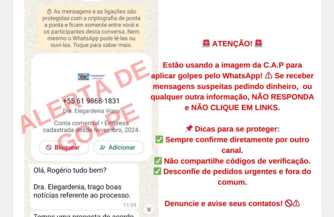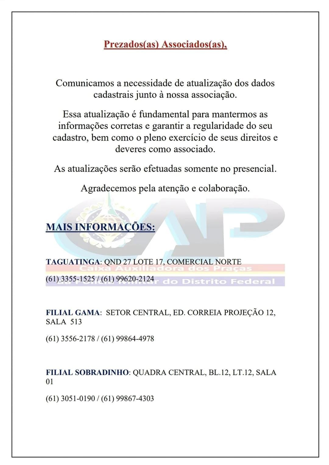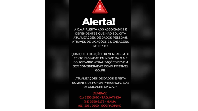 A C.A.P ALERTA AOS ASSOCIADOS E DEPENDENTES QUE NÃO SOLICITA ATUALIZAÇÕES DE DADOS PESSOAIS ATRAVES DE LIGAÇÕES E MENSAGENS DE TEXTO. QUALQUER LIGAÇ&Atil...